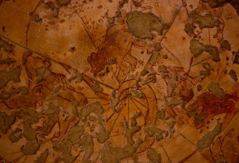 Jordan. Qusayr Amra, dome of the second "caldarium" with a representation of the heavens and the Zodiac