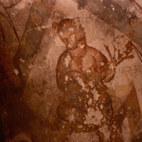 Jordan. Qusayr Amra, bear is playing a three-stringed lut - مشهد دب يعزف على عود ذي ثلاثة أوتار