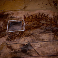 Jordan. Qusayr Amra, alongside a tightly packed group of onagers , a witness may be seen with the state of the paintings before cleaning