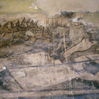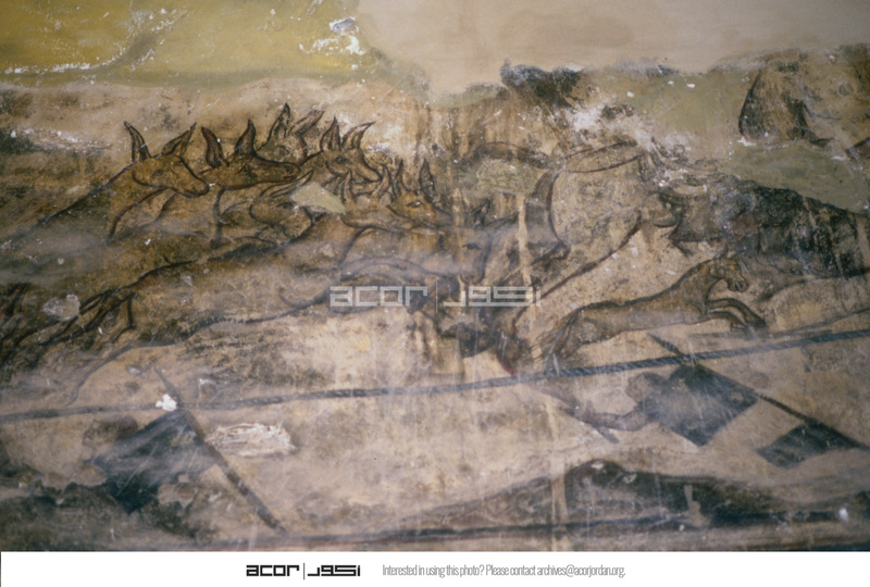 Jordan. Qusayr Amra, detail of the hunt with the net