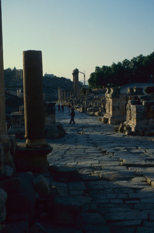 Jordan. Jerash, central section of cardo looking north from South Tetrakionion