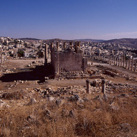 Jordan. Jerash, the Temple Terrace with the Artemis Temple, from west
