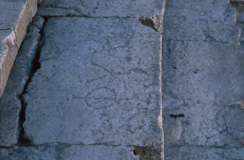 Jordan. Jerash, North theater seating, inscription, Greek