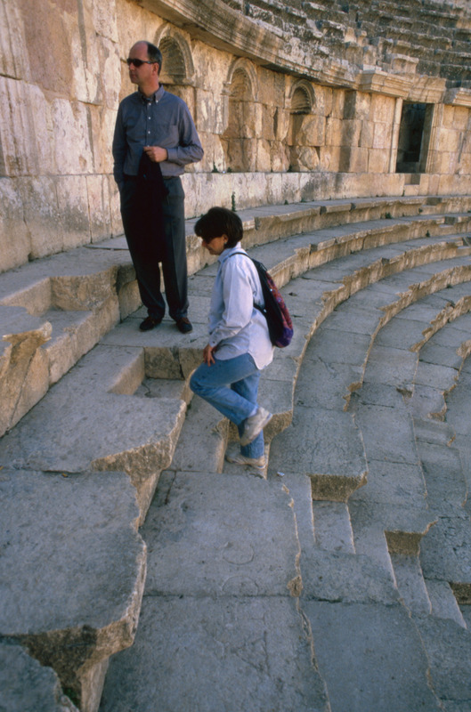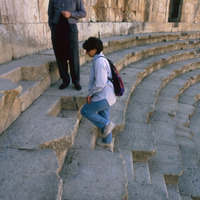 Jordan. Jerash, theater seating, inscription, Greek