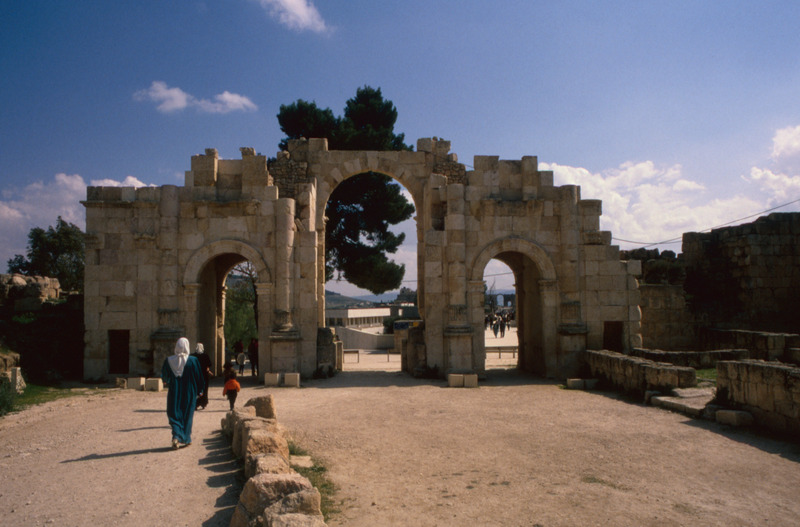 Jordan. Jerash, Arch of Hadrian (South Gate)