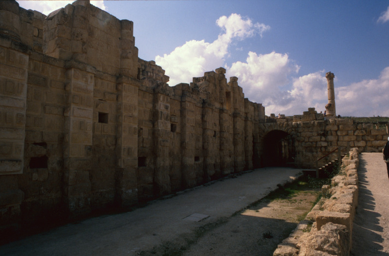 Jordan. Jerash, city wall and Hadrian's Arch (South Gate)