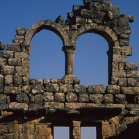 Jordan. Mafraq, Umm al-Jimal, double window of House XVII-XVIII