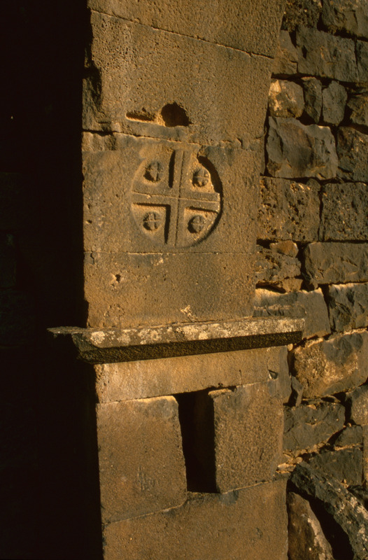 Jordan. Mafraq, Umm al-Jimal, Christian cross on Byzantine Church