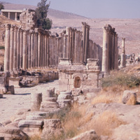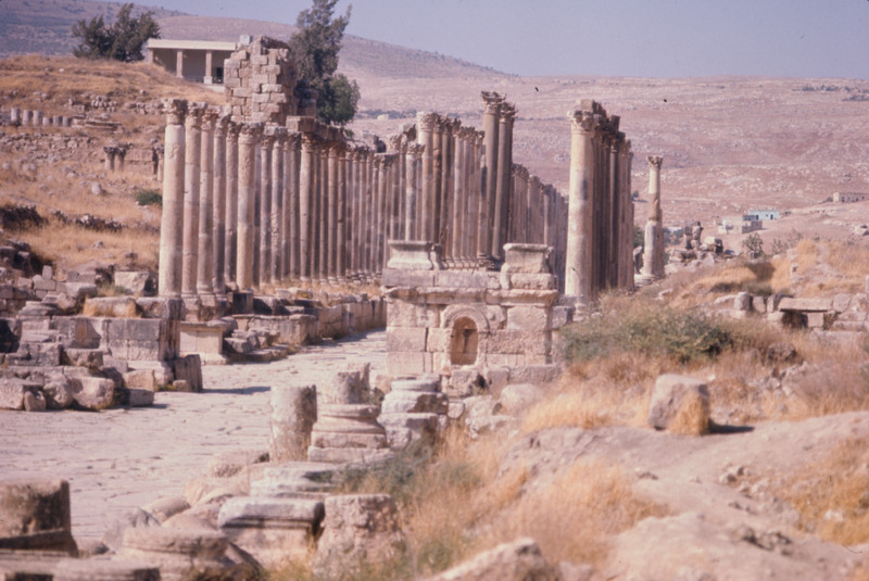 Jordan. Jerash, central section of cardo looking north from South Tetrakionion