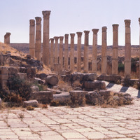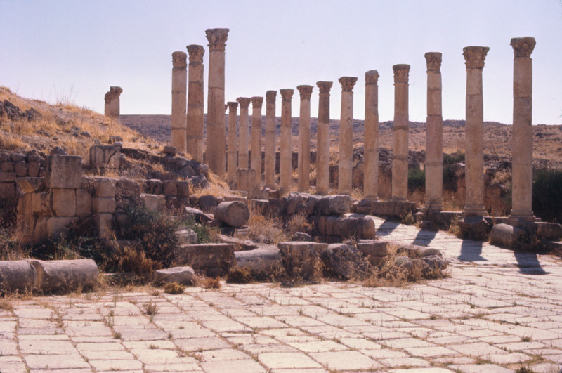 Jordan. Jerash, Colonnade Street (Cardo maximus) view from Oval Plaza