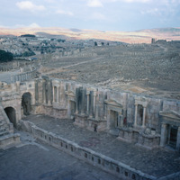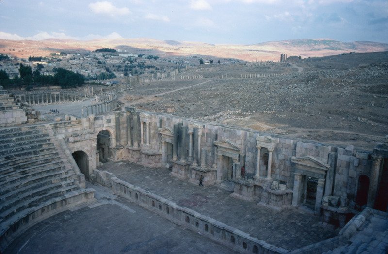 Jordan. Jerash, south theater, with the Oval Plaza in the background