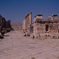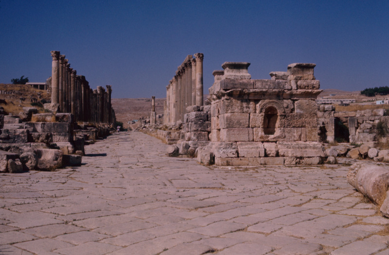 Jordan. Jerash, central section of cardo looking north from South Tetrakionion