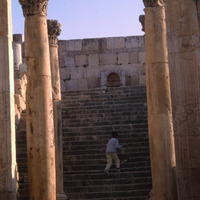 Jordan. Jerash, doorway and stairs of Cathedral (Roman Temple of Dionysus)