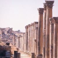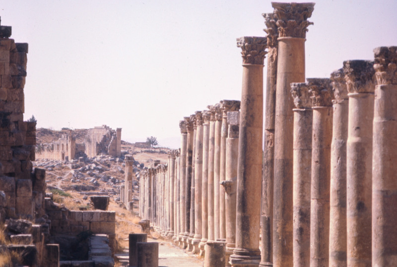 Jordan. Jerash, Colonnade Street (Cardo maximus) and Temple of Zeus