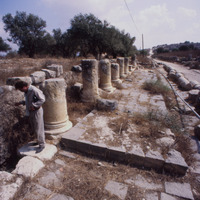 Jordan. Umm Qais, Colonnade street near circular house/gate