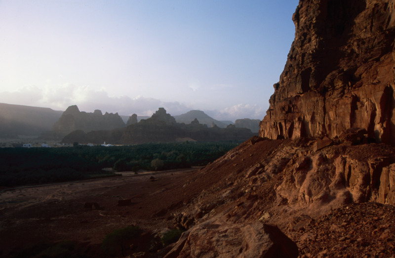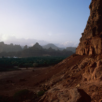 Saudi Arabia. Khuraybeh (Dedan) al-Ula view from Lion Tombs to mountains