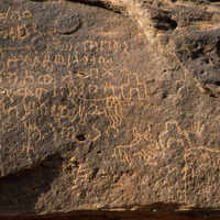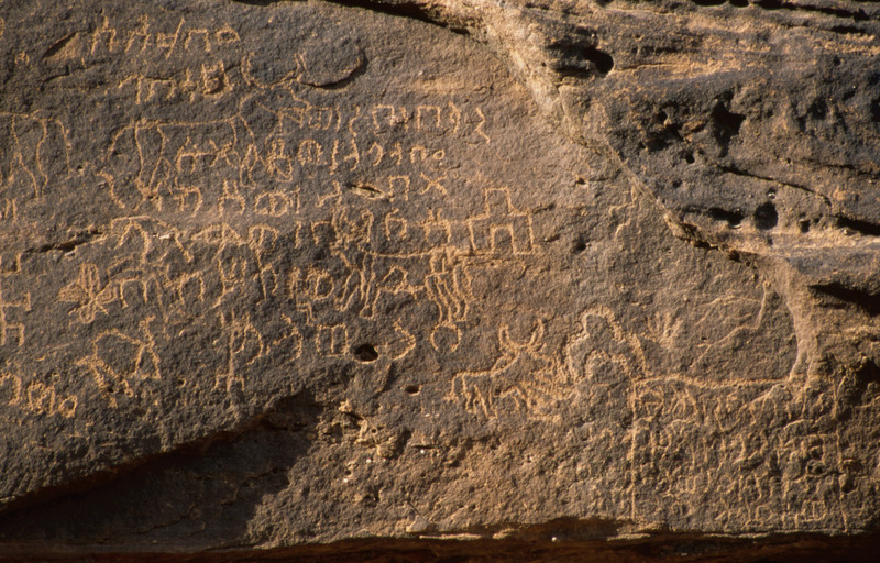 Saudi Arabia. Al-Ula, Jabal Ikmah, rock drawings and inscriptions