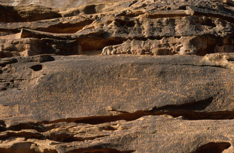 Saudi Arabia. Al-Ula, Jabal Ikmah, rock drawings and inscriptions