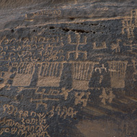Saudi Arabia. Al-Ula, Jabal Ikmah, rock drawings and inscriptions