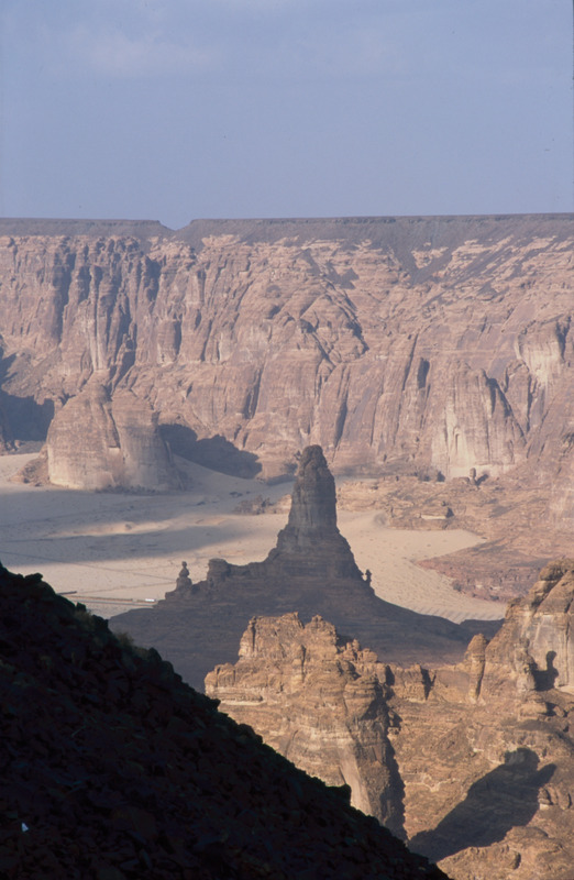 Saudi Arabia. Al-Ula, view north over wadi and mountains from Jabal Harra