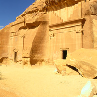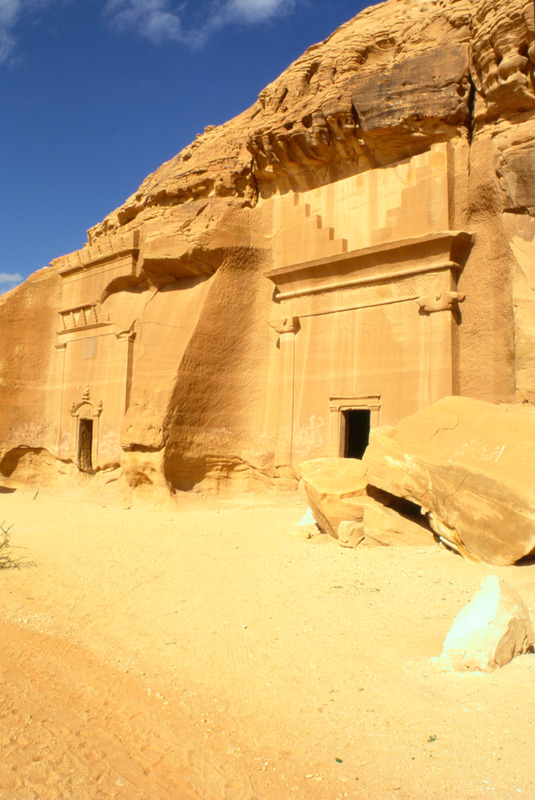 Saudi Arabia. Mada'in Saleh, Qasr al-Bint, tombs on south end