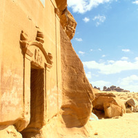 Saudi Arabia. Mada'in Saleh, Qasr al-Bint, tomb 39 on south end