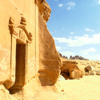 Saudi Arabia. Mada'in Saleh, Qasr al-Bint, tomb 39 on south end