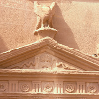 Saudi Arabia. Mada'in Saleh, Qasr al-Bint, detail of tomb on west side Tomb B22/H19