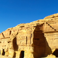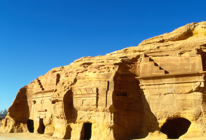 Saudi Arabia. Mada'in Saleh, Khuraimat, tombs in rock W of group E
