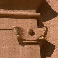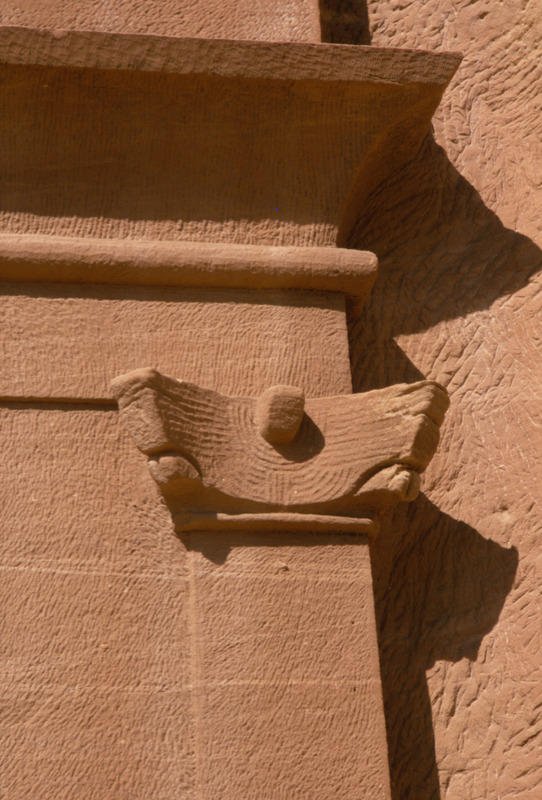 Saudi Arabia. Mada'in Saleh, Khuraimat, capital on tomb face