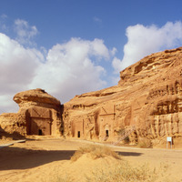 Saudi Arabia. Mada'in Saleh, tomb 87 (left), 86, 85 and 84
