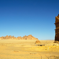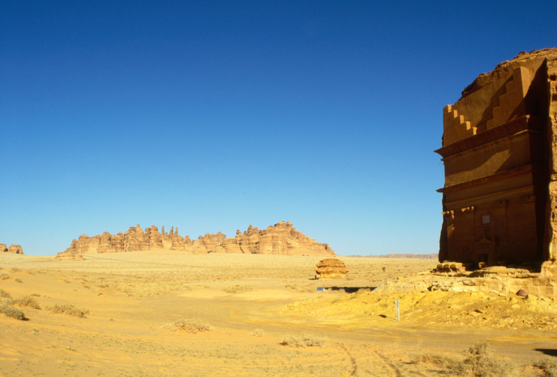 Saudi Arabia. Mada'in Saleh, Qasr al-Farid and Jabal Ethlib behind