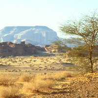 Saudi Arabia. Mada'in Saleh, view north west from Tomb D/111