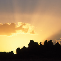 Saudi Arabia. Mada'in Saleh, sun setting behind Jabal Ethlib