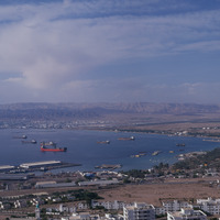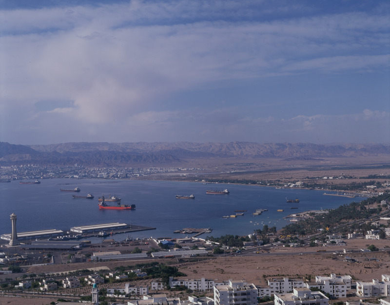 Aqaba, port and end of gulf looking to Eilat
