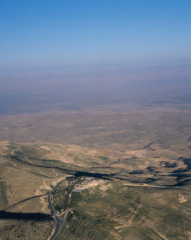 Mount Nebo, Memorial of Moses, from north, with hills in background