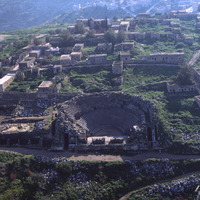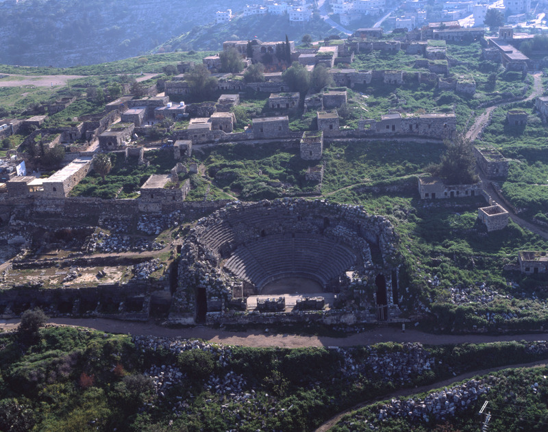 Umm Qais (Gadara), west theater, Basilica terrace and Ottoman village, from west