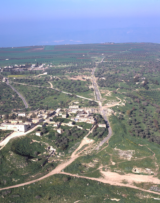 Umm Qais (Gadara), Hellenistic Temple site, north theater, Cardo and Ottoman village from east