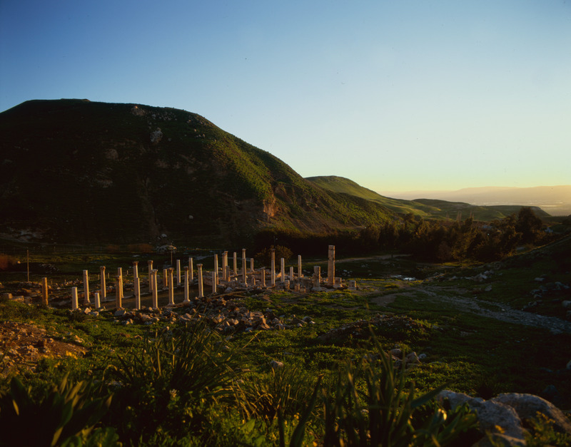 Pella (Tabaqat Fahl), main church and Tell al-Husn from north east