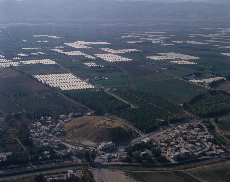 Jordan. Deir Allah, ancient tell in middle of town, view from east