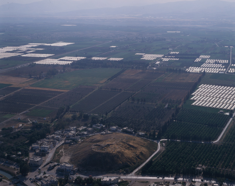 Jordan. Deir Allah, ancient tell in middle of town, view from east