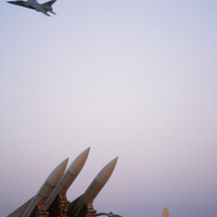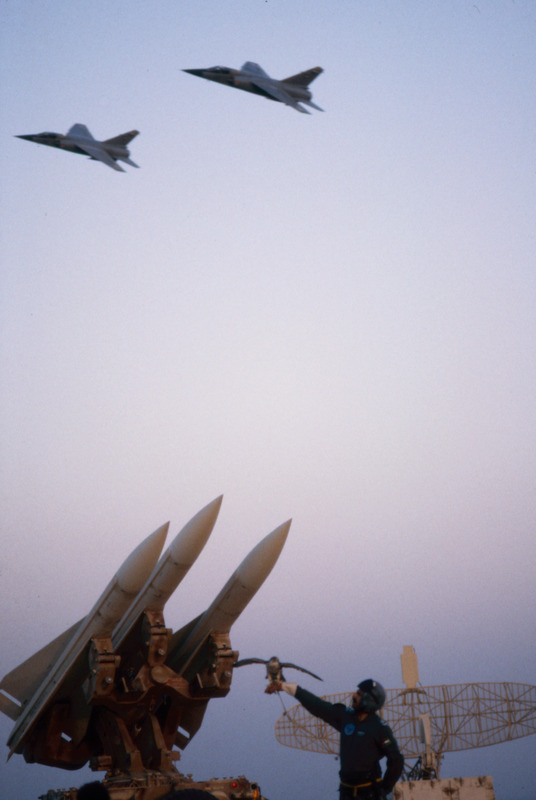Falcon, missile launcher and jets at Muwaffak Salti Air Base