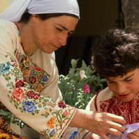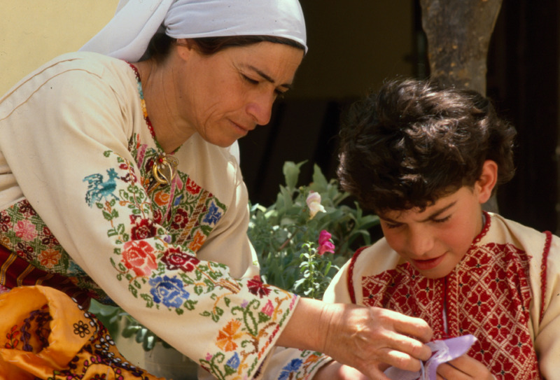 Amman, (Mahatta) Palestinian girl learns embroidery