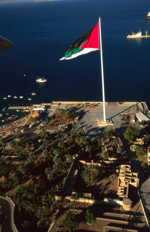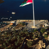 Aqaba, 15th century Mamluk fort , flagpole and gulf from north