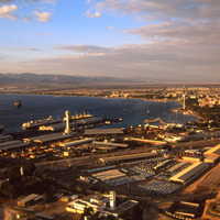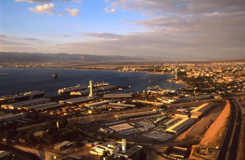 Aqaba port and modern town to Wadi Araba from south east