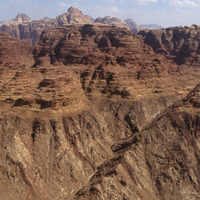 Wadi Rum landscape, granite base and sandstone cap