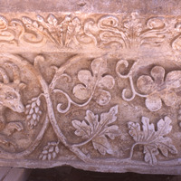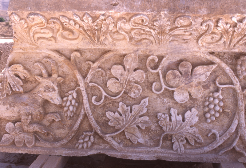 Khirbet edh-Dharih, goat and vine relief carving