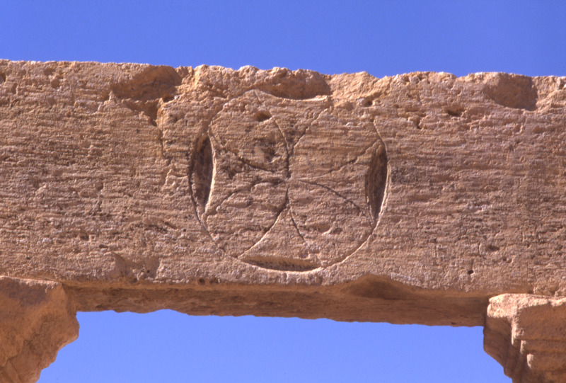 Khirbet edh-Dharih, Byzantine cross on lintel of Nabataean temple