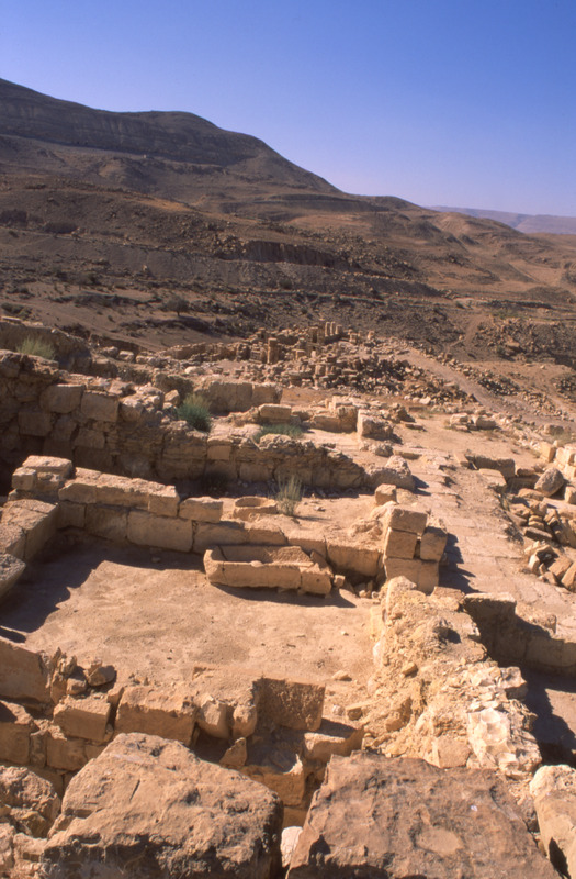 Khirbet edh-Dharih is located along the King's Highway, on the southern bank of Wadi el-Hesa in the broad Wadi el-Laaban valley, is olny 7 Km to the south of the Nabataean sanctuary at Khirbet et-Tannur