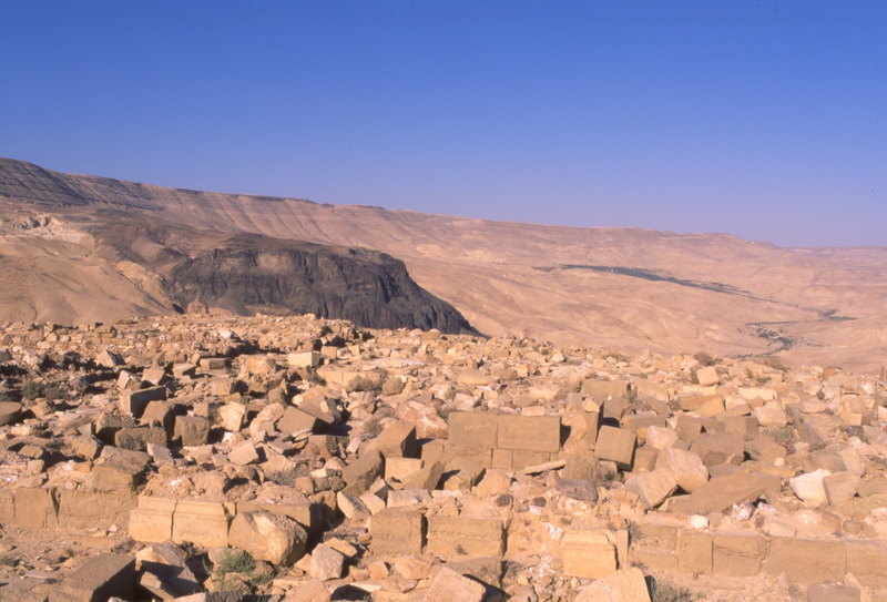 Khirbet et-Tannur, view east along Wadi Hasa and volcanic rock
